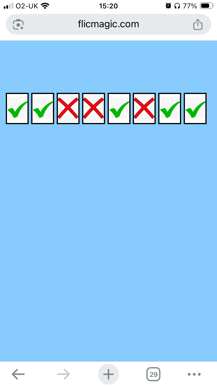 | Predict template Predict the outcome of up to 8 choices. You are using your flic button while they are making their yes/no keep/reject choices. Show your phone and the screen matches their choices. | ![]() |